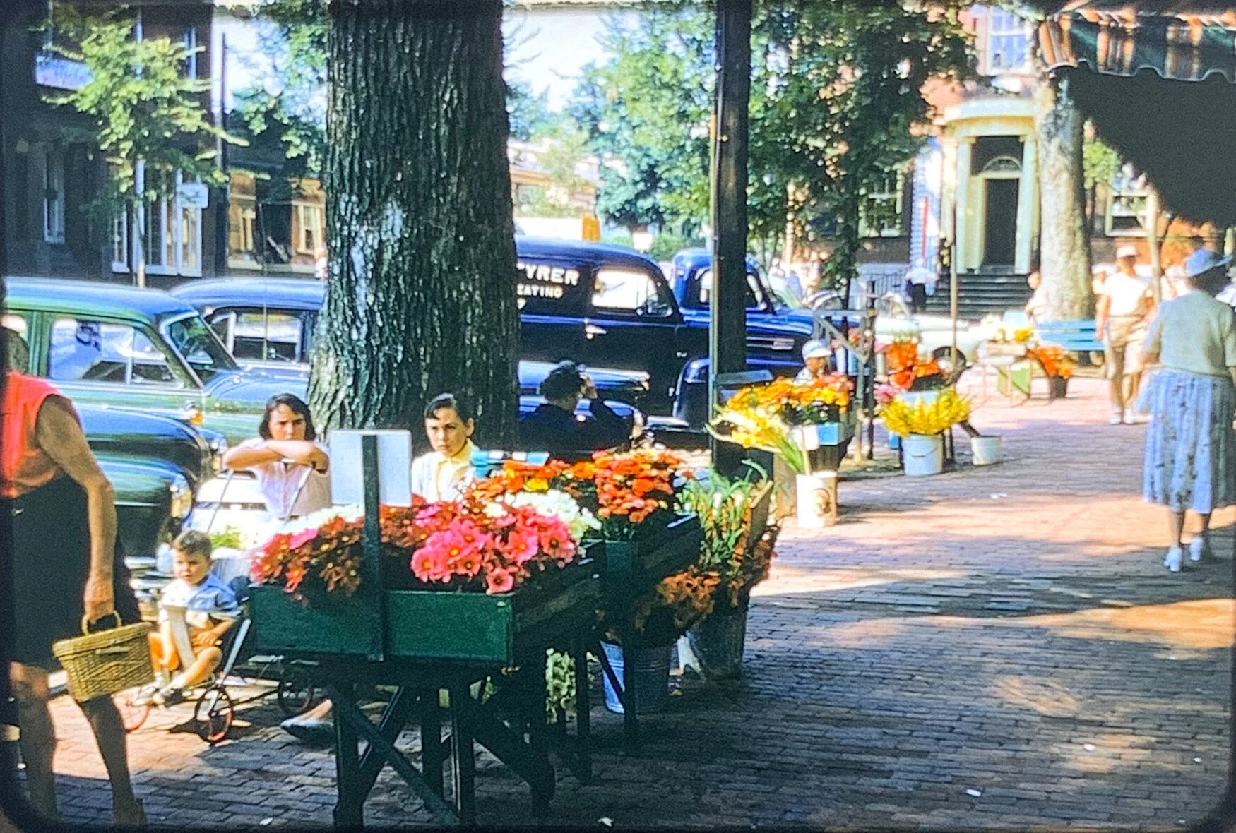 In 2010, Bob found himself at the Hell’s Kitchen Flea Market in NYC. He was flipping through a freshly purchased lot of slides from earlier in the day, when he noticed something very special about them. “I vividly recall recognizing that some the slides had been labeled ‘Sconset’ by the original photographer,” he said. Bob was ecstatic when he realized he’d just purchased old slide photographs taken on Nantucket, and upon closer inspection revealed images of a rose-covered Sconset home. He was over the moon, and decided right then and there to start a sub-collection of Nantucket-specific slides.